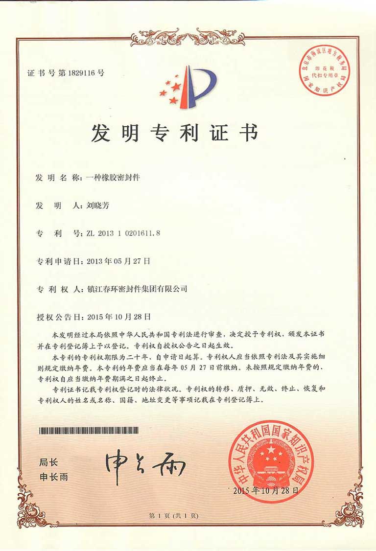 一种橡胶密封件-发明专利证书